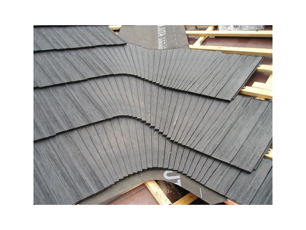Plastový šindeľ - imitácia štiepaný šindeľ, slamou - verná kópia klasického štiepaného šindľa z dreva.