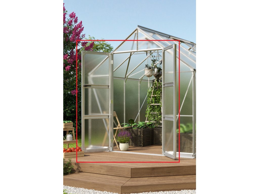 U skleníkov VITAVIA SIRIUS a VITAVIA URANUS je k dispozícii možnosť vymeniť existujúce posuvné dvere za dvere na pántoch. Dverami na pántoch je možné nahradiť pôvodné posuvné dvere (tie je nutné demontovať). Rám dverí je vyrobený z eloxovaného hliníka v čiernej farbe, ktorý zaisťuje vysokú odolnosť a ochranu pred prírodnými vplyvmi pre dlhodobé využitie.