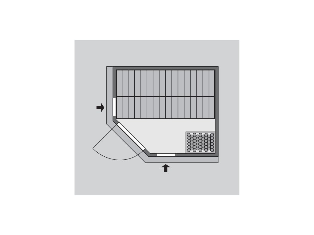 Sauna nemá vlastnú podlahu a je nutné ju umiestniť výhradne v miestnosti so zodpovedajúcou podlahovou krytinou, ideálne dlažbou. Saunu dodávame vo verzii bez stropnej rímsy (profilu) pri strope, v ktorom môže byť inštalované dodatočné LED osvetlenie.