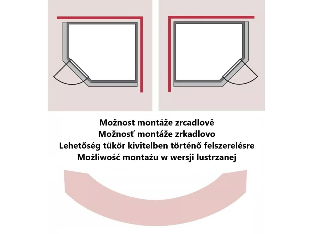 Celosklenené dvere z grafitového bezpečnostného skla hrúbky 8 mm. Priechodné rozmery dverí sú 64 x 173 cm. Dvere je možné namontovať ako ľavé alebo pravé.