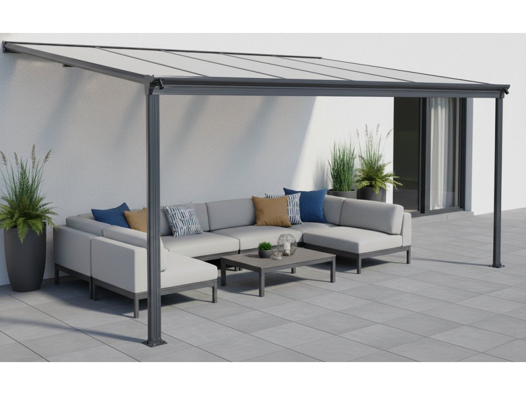 Hliníková pergola k domu LANITPLAST WALL 33 antracit + číry PC
