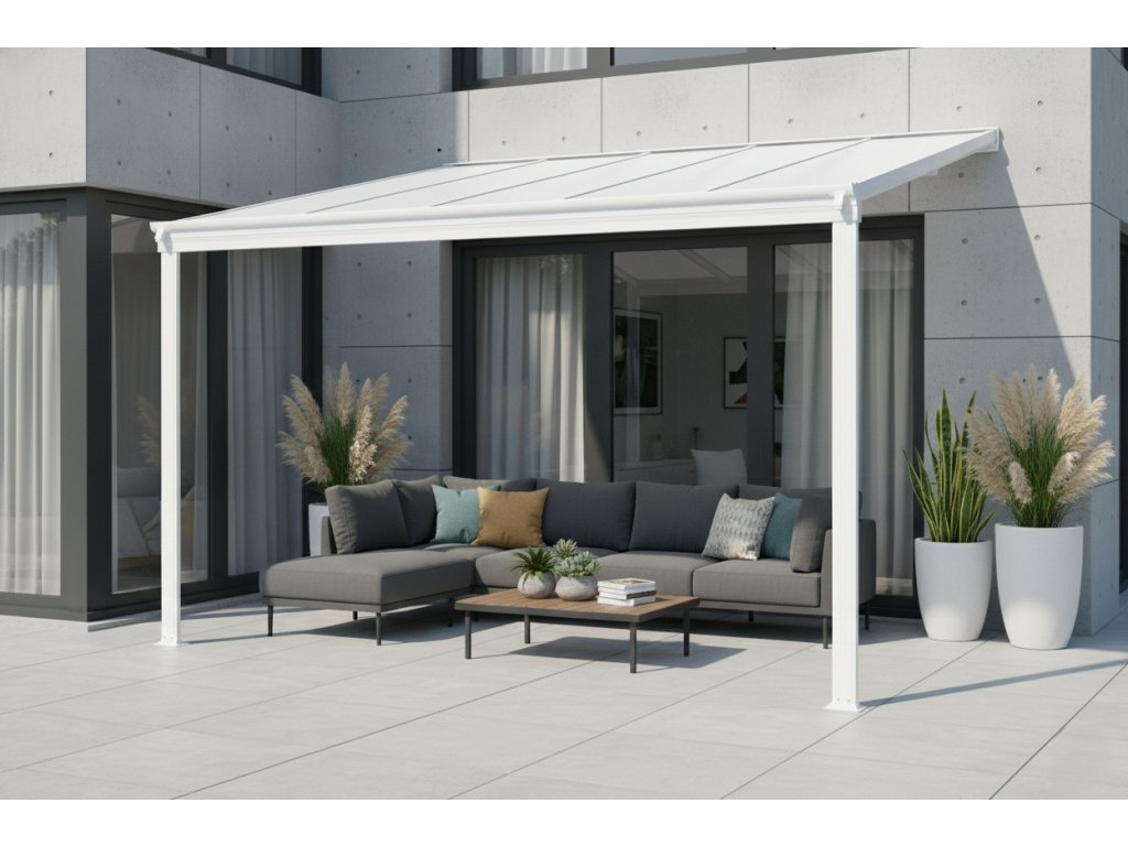 Hliníková pergola LANITPLAST WALL 33 biela + opál PC