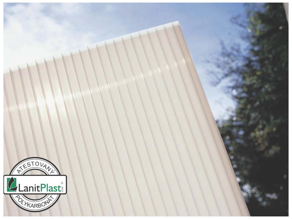 - strecha z OPÁLOVÉHO (mliečne bieleho) dvojstenného KOMÔRKOVÉHO polykarbonátu 6 mm