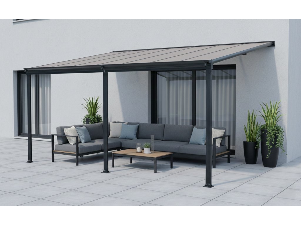 Hliníková pergola k domu LANITPLAST WALL 43 antracit + bronz PC
