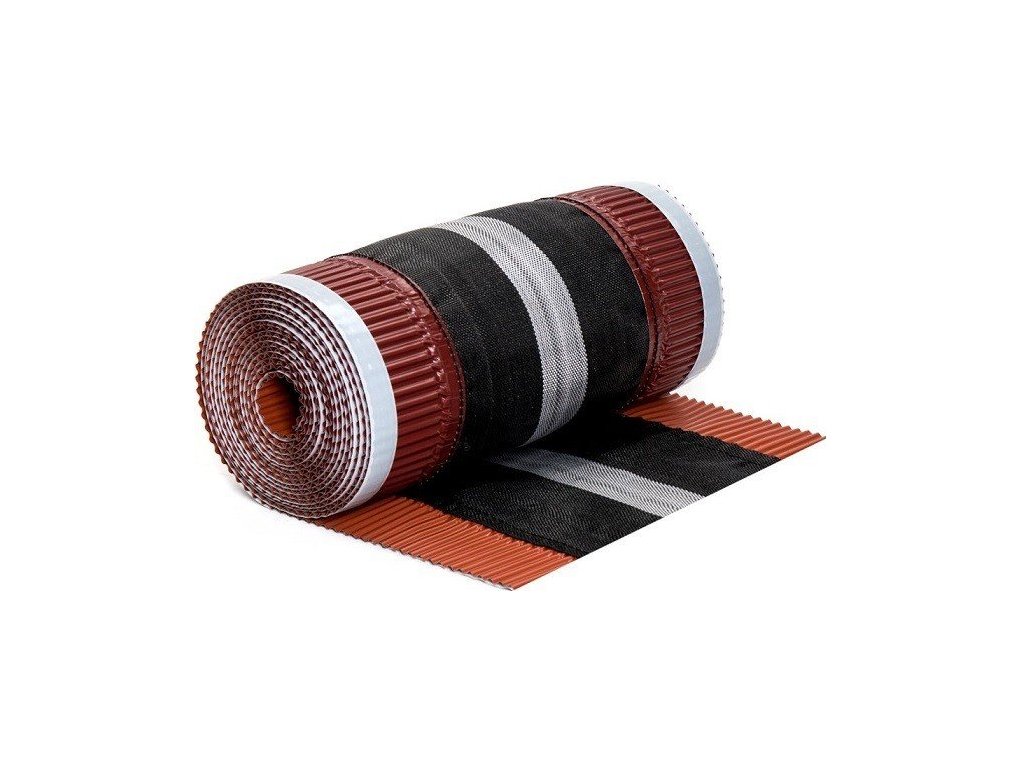 Tradičný samolepiaci hrebeňový a nárožný pás STANDARD slúži na zaistenie vynikajúceho a spoľahlivého vetrania priestoru medzi strešnou krytinou a tepelnou izoláciou. Je vyrobený z profilovaného hliníka, ktorý je zlepený a zošitý veľmi odolnými niťami s technickou netkanou textíliou vyznačujúcou sa veľmi dobrými difúznymi vlastnosťami. Tvarovateľné hliníkové okraje obsahujú butylkaučukovú pásku na pohodlné nalepenie pásu na strešnú krytinu. Vyznačuje sa vysokou priepustnosťou, ktorá umožňuje voľné prúdenie vzduchu a zaisťuje optimálne odvetrávanie šikmej strechy a ventiláciu vlhkosti zhromažďujúcu sa v tepelnej izolácii a pod povrchom strechy. Pomáha k účinnej ochrane pred preniknutím vody, snehu, prachu, lístia a ďalších nečistôt pod strešnú plochu. Tento typ hrebeňového pásu je použiteľný pre všetky druhy strešných krytín okrem krytín s vysokým profilom, na ktoré odporúčame využiť hrebeňový a nárožný pás UNI ROLL.