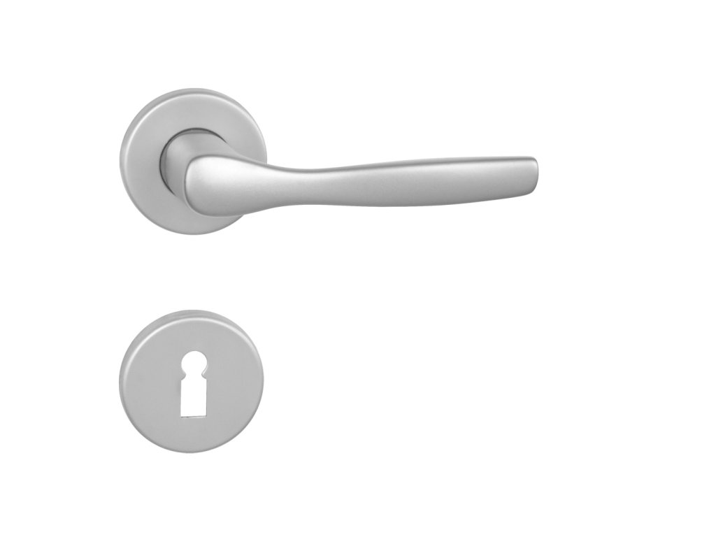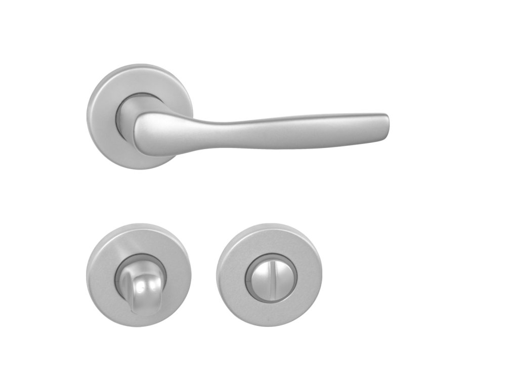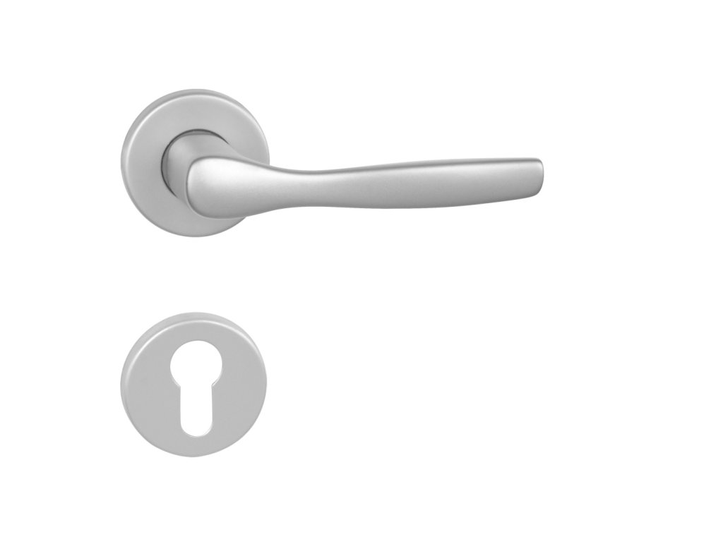Interiérová kľučka LUXOR - R hliníková / PRÍRODNÉ rozetové kovanie