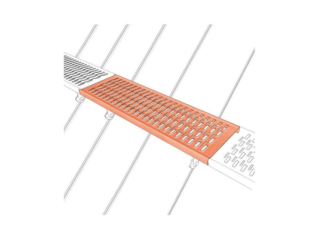 Střešní komínová lávka UNI, jinak zvaná stoupací rošt nebo stoupací plošina, je vyrobená z kvalitní pozinkované oceli a slouží pro rychlý a bezpečný pohyb na šikmých střechách. Usnadňuje pohyb a práci na střeše a je vyžadována při pravidelné revizi komína. Poskytuje protiskluzový povrch, výbornou antikorozní ochranu, odolnost proti povětrnostním vlivům, mrazu i stárnutí a také rychlou a snadnou montáž s pomocí přímo určených systémových držáků, které jsou přizpůsobené k instalaci na různé druhy střešních krytin. Stoupací rošty lze spojovat do delších úseků použitím speciálních spojek. Dle potřeby lze s ohledem ke snazší přístupnosti komínových lávek a jistějšího pohybu po střeše instalovat na krytinu i střešní nášlapy. Tento typ komínové lávky lze univerzálně použít pro všechny druhy střešních krytin. Je certifikována dle ČSN EN 516.
