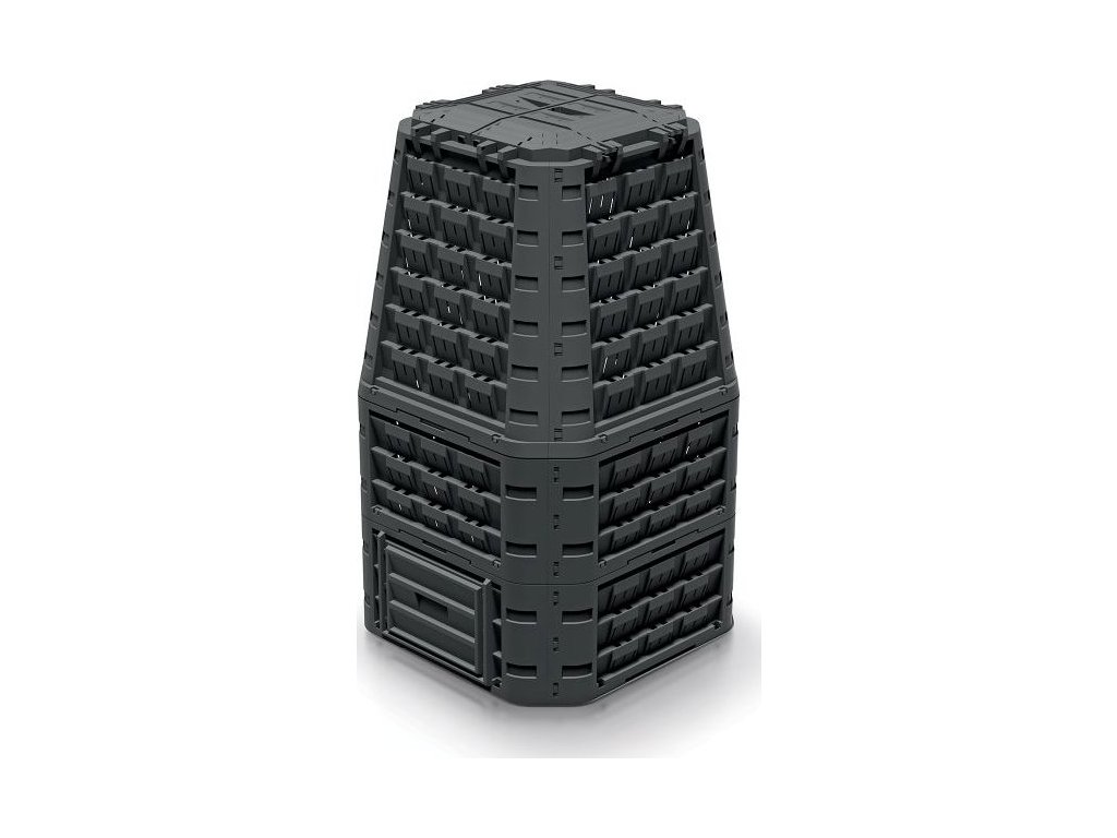 Vďaka jednoduchej konštrukcii je montáž veľmi rýchla a nevyžaduje žiadne náradie – jednotlivé diely sa jednoducho zacvaknú do seba. Horné veko slúži na ľahké plnenie kompostéra trávou, lístím, kuchynským odpadom alebo vetvami, zatiaľ čo spodné dvierka umožňujú pohodlné vyberanie hotového kompostu. Bočné ventilačné otvory zaisťujú optimálnu cirkuláciu vzduchu, čo urýchľuje rozkladný proces a zabraňuje vzniku zápachu.