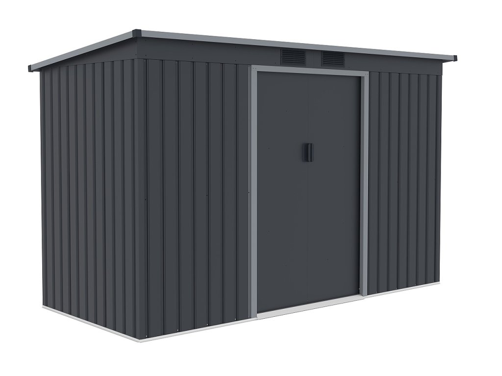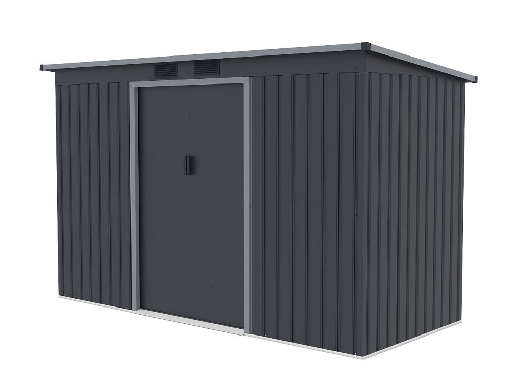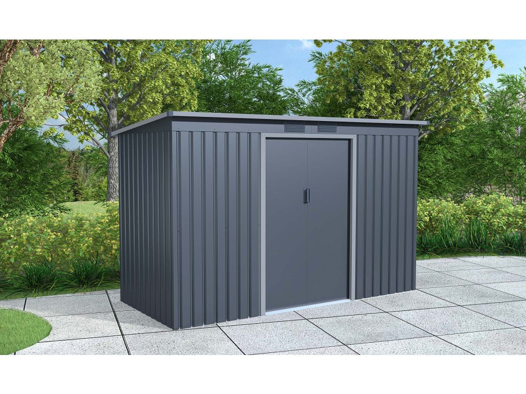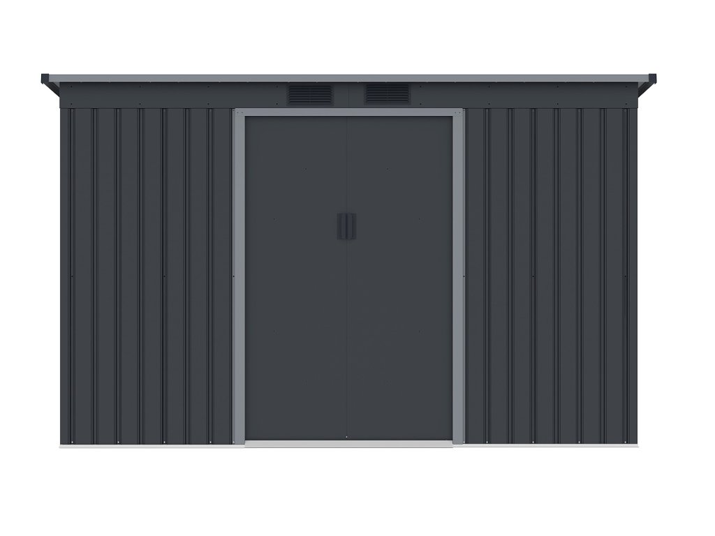 Klasická pultová strecha poskytuje dostatok priestoru a umožňuje efektívny odvod dažďovej vody. Čelné vnútorné posuvné dvojkrídlové dvere o rozmere 96 x 151 cm uľahčujú prístup do domčeka.