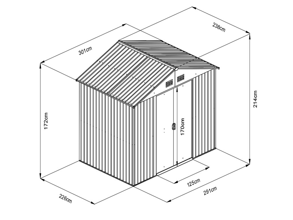 Domček je možné použiť na uskladnenie záhradkárskych, športových, bazénových, grilovacích, campingových, motoristických a ďalších potrieb. Ide o jeden z najkvalitnejších domčekov na slovenskom trhu so silou steny 0,25 mm. Moderný design, farba, jednoduchá montáž, celoročné použitie. Kvalitný materiál s povrchovou úpravou - elektrolyticky pozinkovaný plech so žiarovo nanesenou farbou. Sedlová strecha, čelné posuvné dvere. Možnosť uzamknutia (zámok nie je obsahom dodávky).