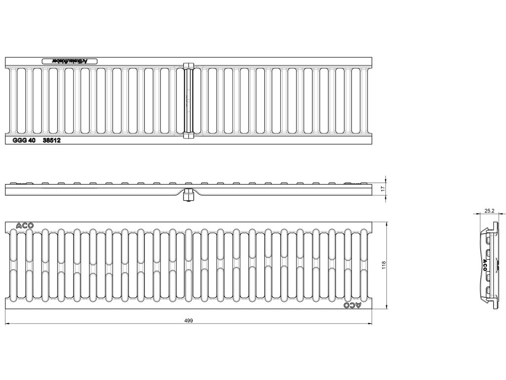 Mreža pojazdová B125 pre odvodňovacie žľaby ACO SELF liatinová 500 x 118 mm