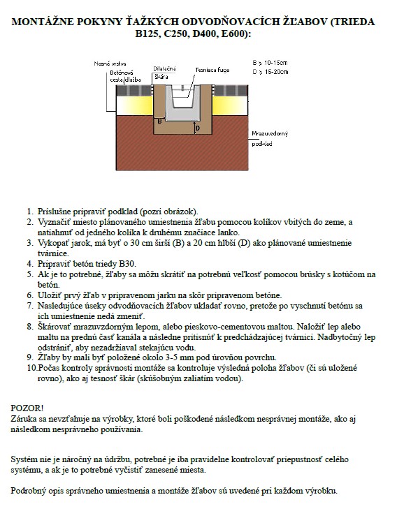 Podrobné informácie k inštalácii betónových žľabov BIELBET nájdete v montážnom návode.