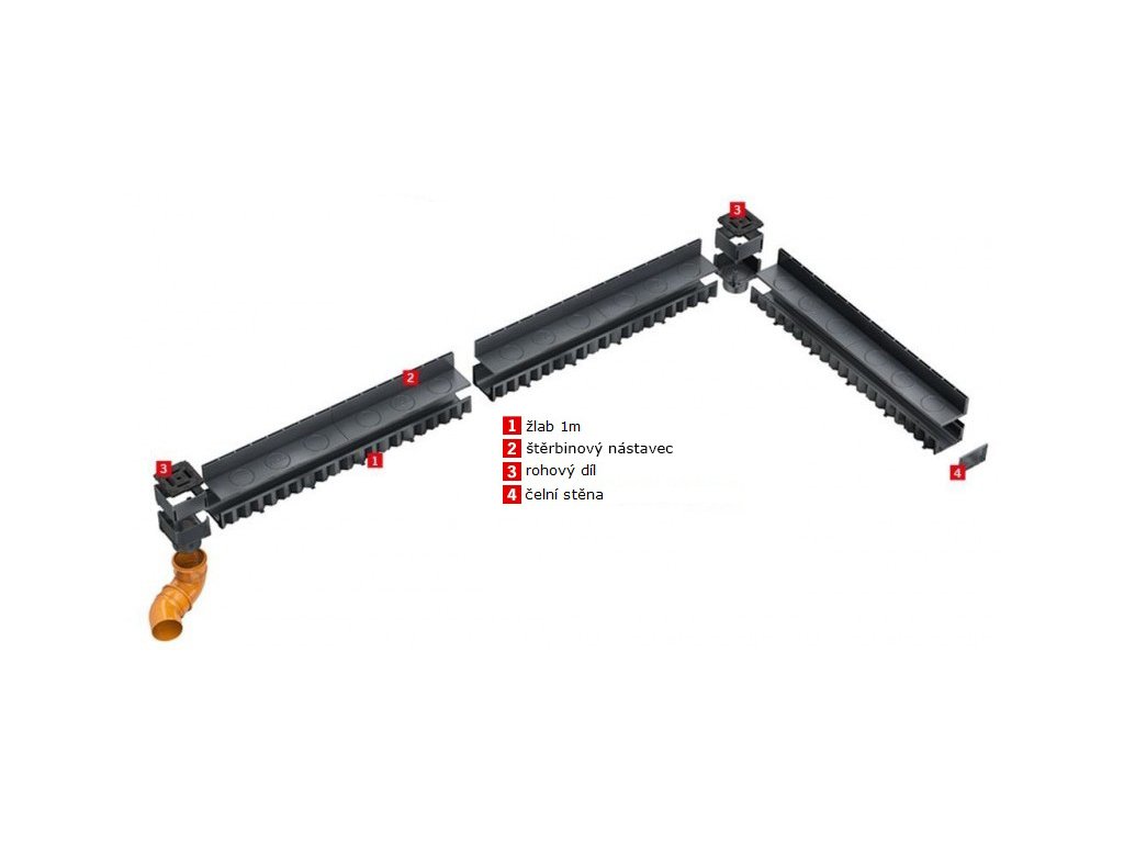 K tomuto typu žľabu je možné inštalovať priamo určenú koncovku, koncovku s odtokom, spojku alebo špeciálnu sadu s koncovkami, sitkom a spodným odtokom.