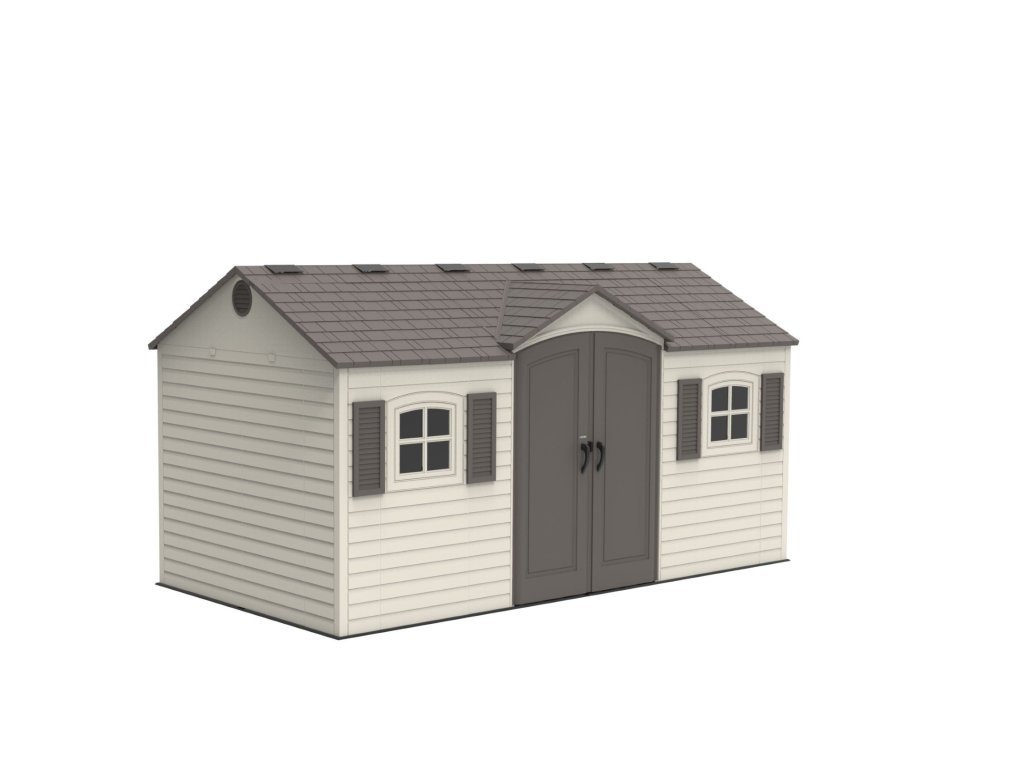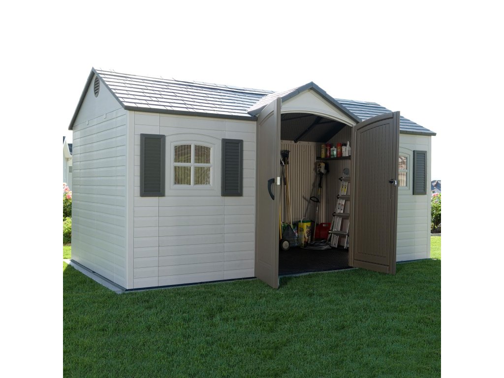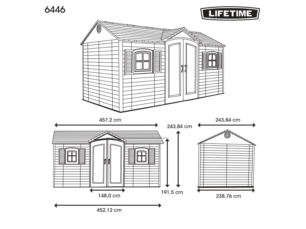 Robustný plastový domček "novej generácie" LIFETIME GARTEN VILLA 6446 na uskladnenie záhradkárskych, športových, bazénových, grilovacích, campingových, motoristických a ďalších potrieb. Moderný design, jednoduchá montáž, celoročné použitie. Záhradný domček má nosnú kovovú konštrukciu a dvojité steny, strecha, dvojité dvere, podlaha sú vyrobené z masívneho veľmi odolného a prakticky nerozbitného plastu. Plastová protišmyková podlaha je súčasťou domčeka (je v cene). Domček je vybavený dvojkrídlovými dverami na pántoch. Sila dvojitej plastovej steny je 26 mm. Sklon strechy je 30 °, čo výrazne znižuje množstvo a tlak snehu na strechu. Materiál domčeka (extrémne odolný polyetylén s UV filtrom) nežltne ani nekrehne, takže odpadá pravidelné natieranie domčeka ako je nutné v prípade napr. drevených domčekov - záhradný plastový domček je prakticky bezúdržbový. Domček je navrhnutý a vyrobený tak, aby montáž bola čo najjednoduchšia a najkratšia. Jednotlivé diely iba zaklapnete do susedných dielov a spoj zaistíte skrutkou.