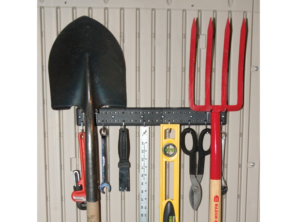 - 2x upevňovacia kovová lišta na záhradné náradie