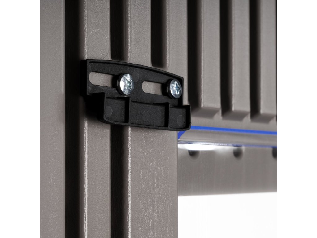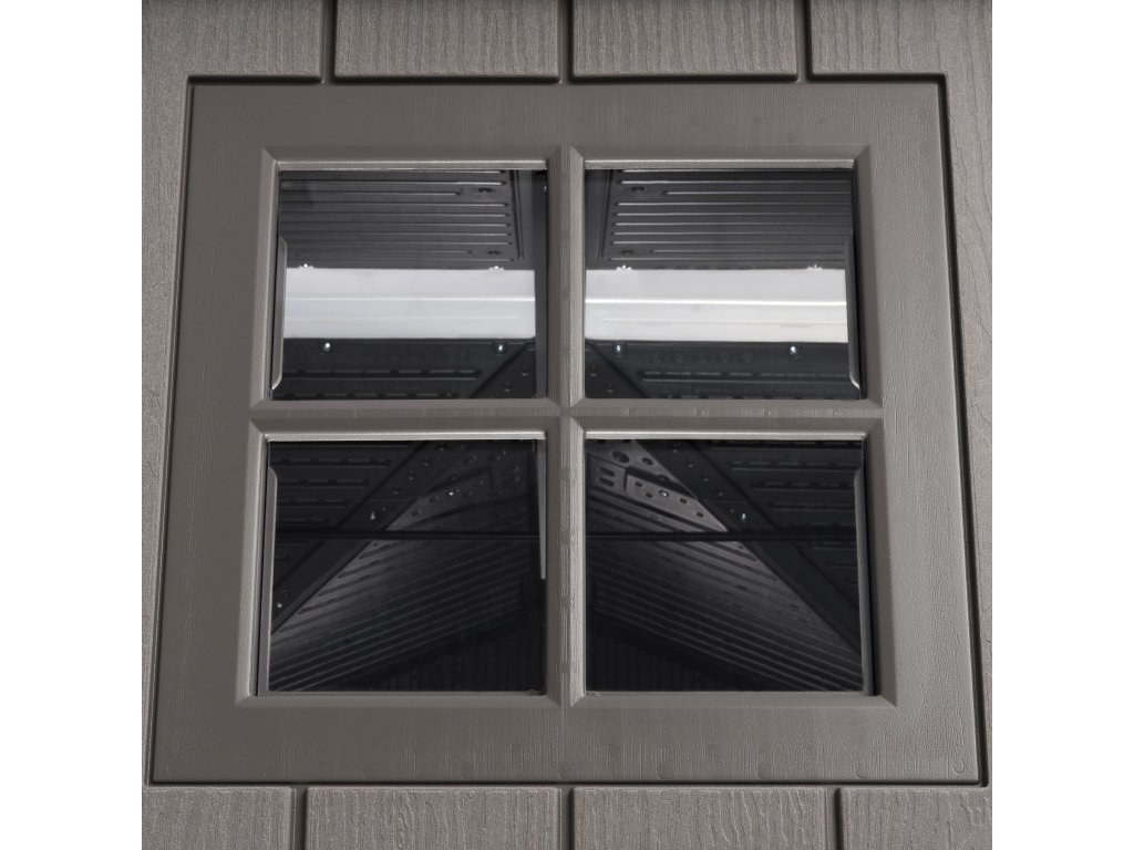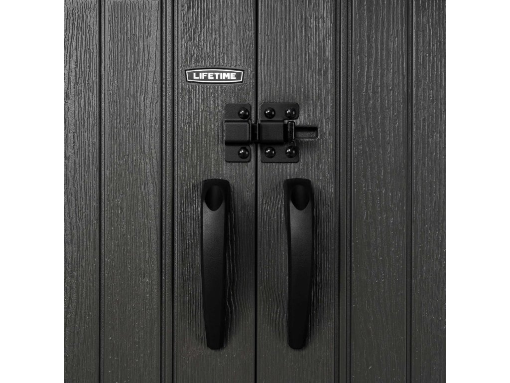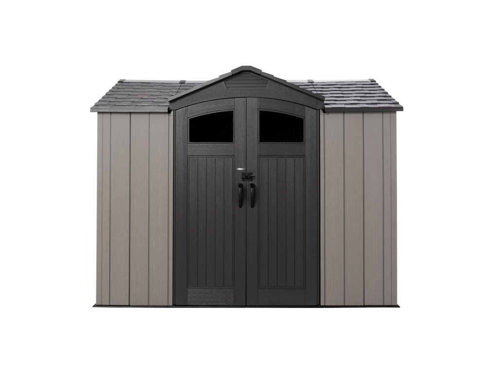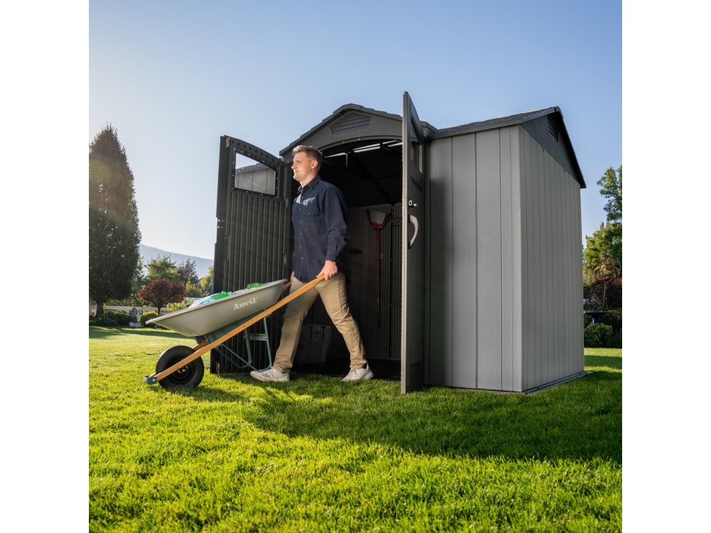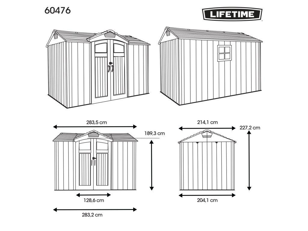 Robustný plastový domček "novej generácie" LIFETIME MODEL 60476 na uskladnenie záhradkárskych, športových, bazénových, grilovacích, campingových, motoristických a ďalších potrieb. Moderný design, jednoduchá montáž, celoročné použitie. Záhradný domček má nosnú kovovú konštrukciu a dvojité steny, strecha, dvojité dvere, podlaha sú vyrobené z masívneho veľmi odolného a prakticky nerozbitného plastu. Plastová protišmyková podlaha je súčasťou domčeka (je v cene). Domček je vybavený dvojkrídlovými dverami na pántoch. Sila dvojitej plastovej steny je 26 mm. Sklon strechy je 30 °, čo výrazne znižuje množstvo a tlak snehu na strechu. Materiál domčeka (extrémne odolný polyetylén s UV filtrom) nežltne ani nekrehne, takže odpadá pravidelné natieranie domčeka ako je nutné v prípade napr. drevených domčekov - záhradný plastový domček je prakticky bezúdržbový. Domček je navrhnutý a vyrobený tak, aby montáž bola čo najjednoduchšia a najkratšia. Jednotlivé diely iba zaklapnete do susedných dielov a spoj zaistíte skrutkou.