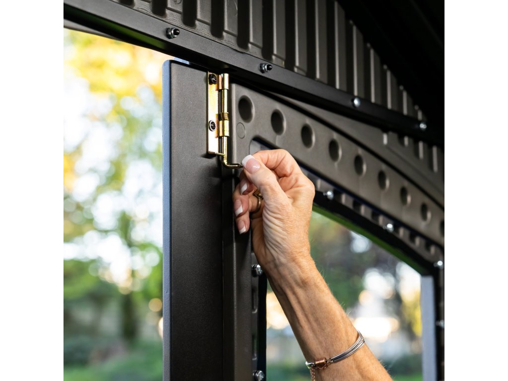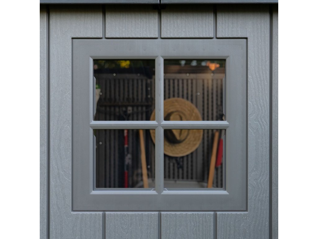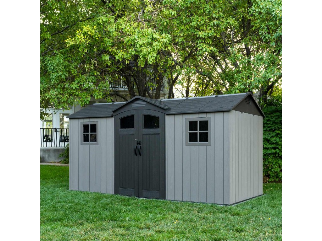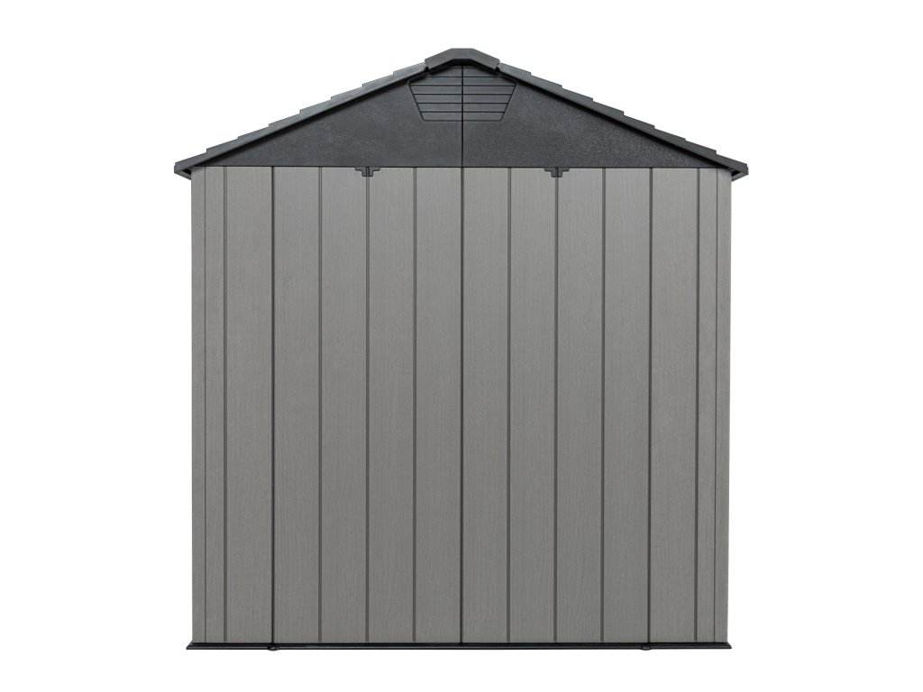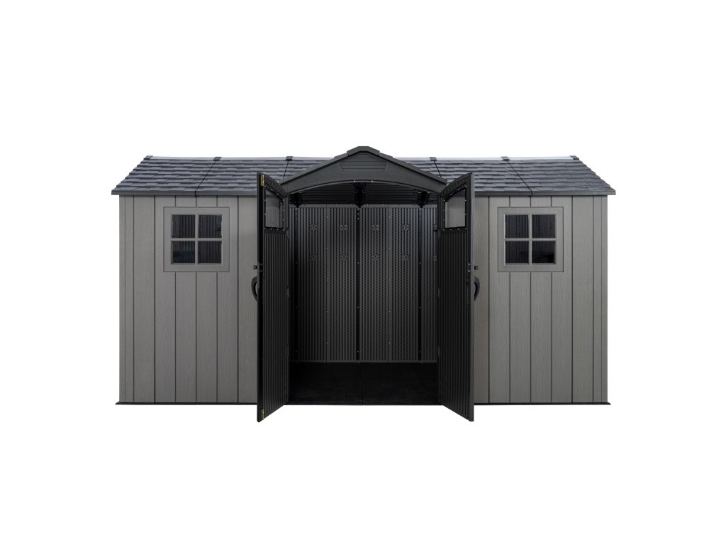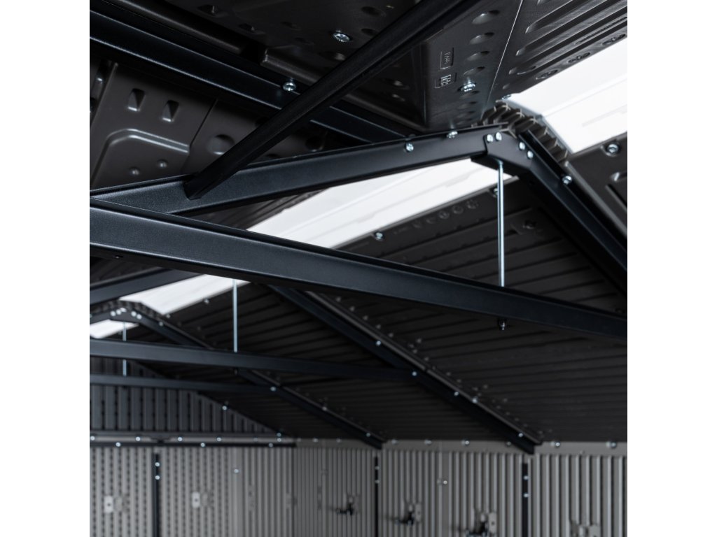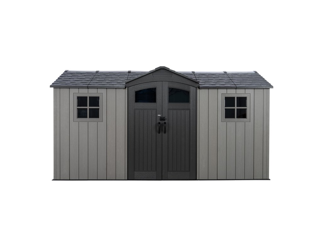 Robustný plastový domček "novej generácie" LIFETIME MODEL 60477 na uskladnenie záhradkárskych, športových, bazénových, grilovacích, campingových, motoristických a ďalších potrieb. Moderný design, jednoduchá montáž, celoročné použitie. Záhradný domček má nosnú kovovú konštrukciu a dvojité steny, strecha, dvojité dvere, podlaha sú vyrobené z masívneho veľmi odolného a prakticky nerozbitného plastu. Plastová protišmyková podlaha je súčasťou domčeka (je v cene). Domček je vybavený dvojkrídlovými dverami na pántoch. Sila dvojitej plastovej steny je 26 mm. Sklon strechy je 30 °, čo výrazne znižuje množstvo a tlak snehu na strechu. Materiál domčeka (extrémne odolný polyetylén s UV filtrom) nežltne ani nekrehne, takže odpadá pravidelné natieranie domčeka ako je nutné v prípade napr. drevených domčekov - záhradný plastový domček je prakticky bezúdržbový. Domček je navrhnutý a vyrobený tak, aby montáž bola čo najjednoduchšia a najkratšia. Jednotlivé diely iba zaklapnete do susedných dielov a spoj zaistíte skrutkou.