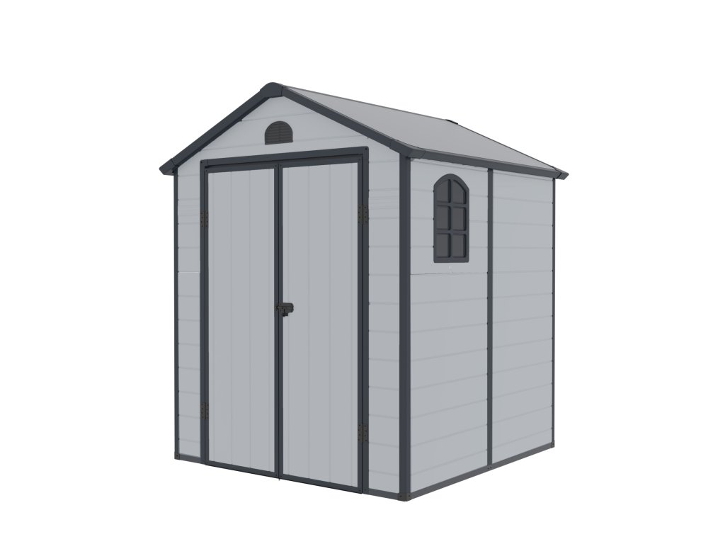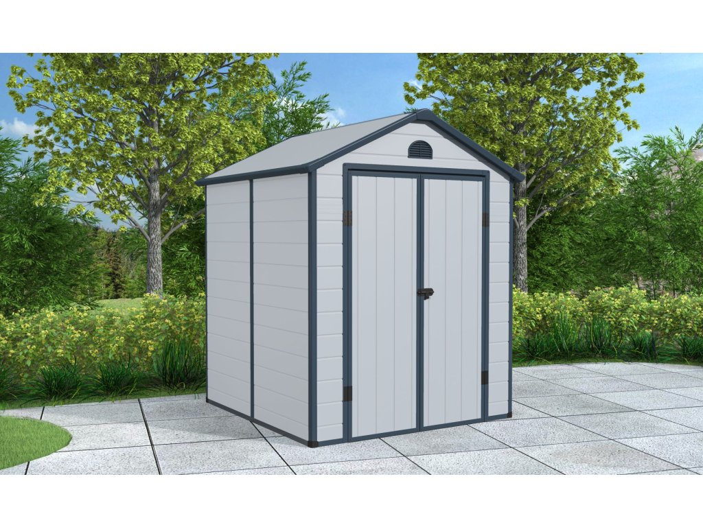 Elegantný dizajnovo zaujímavý plastový domček LONGFORD 66. Prakticky bezúdržbový záhradný domček využijete na uskladnenie záhradného náradia, bicykla, kosačky, príslušenstva k bazénu, dreva atď. S moderným dizajnom a jednoduchou montážou je tento domček pripravený poskytnúť vám praktický a štýlový úložný priestor po celý rok.