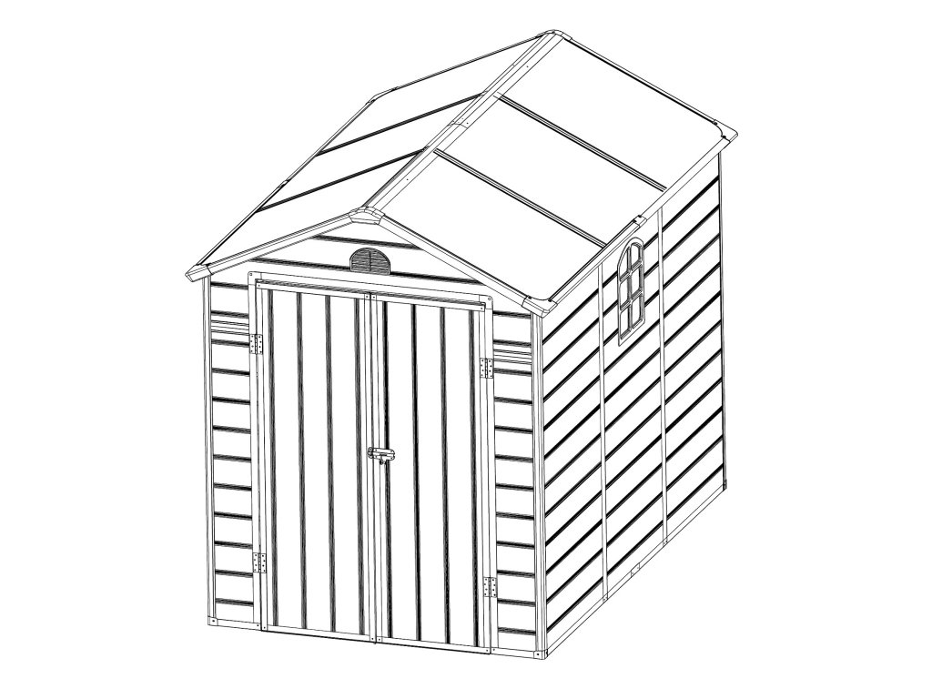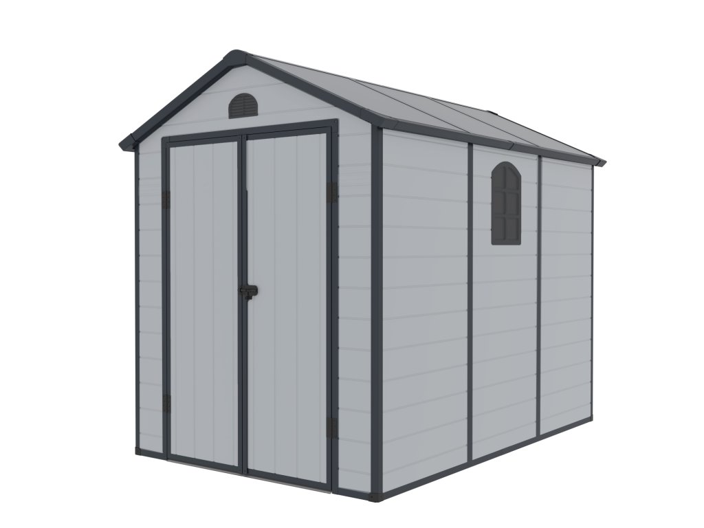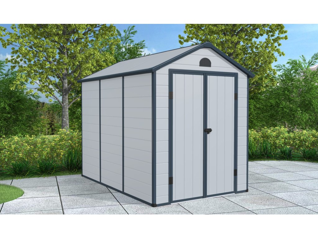 Elegantný dizajnovo zaujímavý plastový domček LONGFORD 69. Prakticky bezúdržbový záhradný domček využijete na uskladnenie záhradného náradia, bicykla, kosačky, príslušenstva k bazénu, dreva atď. S moderným dizajnom a jednoduchou montážou je tento domček pripravený poskytnúť vám praktický a štýlový úložný priestor po celý rok.