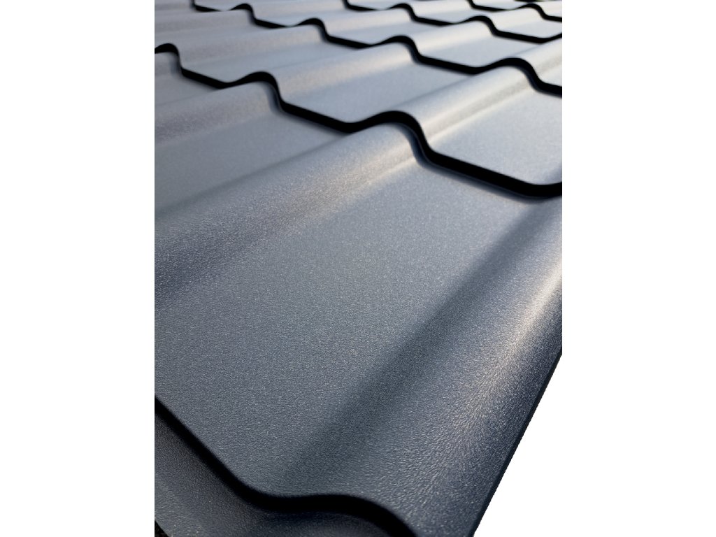 Strešná krytina plechová DIAMENT Eco Plus imitácia škridiel 350 plechové krytiny Blachotrapez prevedenie MAT PLADUR lesk RAL 7016 antracitová - 35 µm