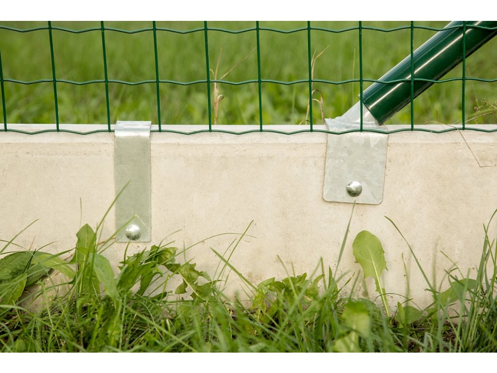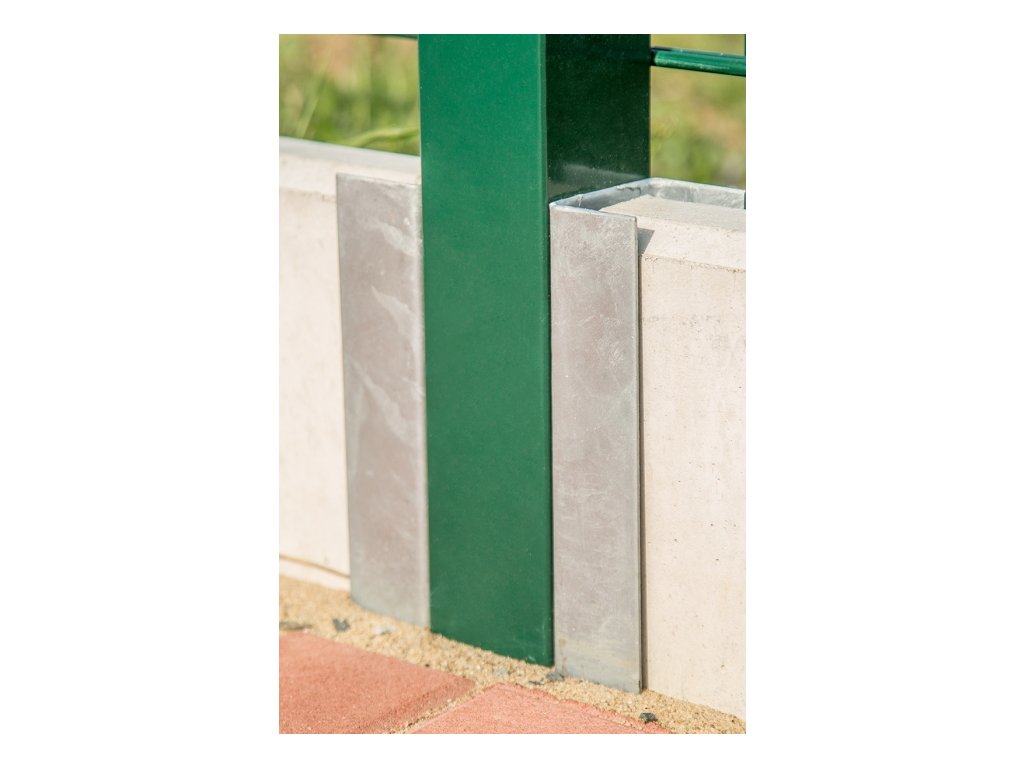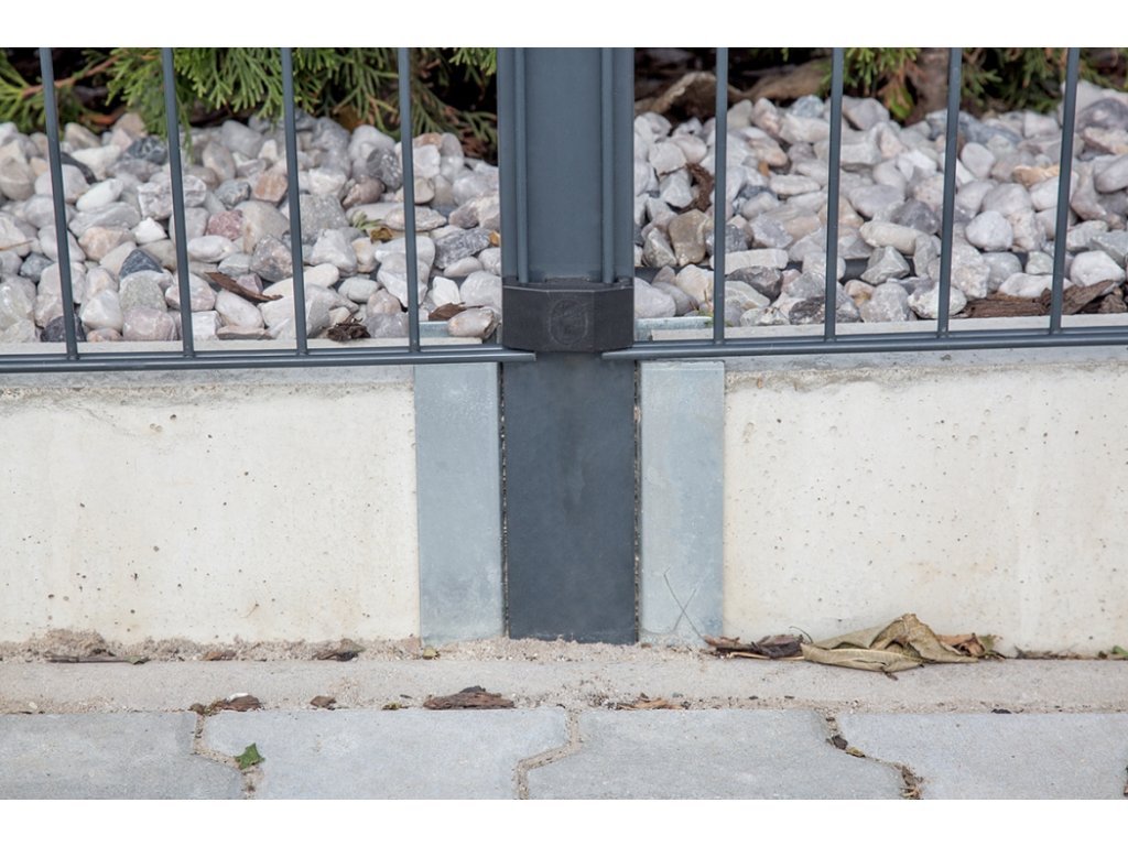 Stabilizačný držiak pre spoľahlivú inštaláciu a upevnenie plastových podhrabových dosiek PILHRAB s výškou 200 mm medzi okrúhle stĺpiky s priemerom 38 mm