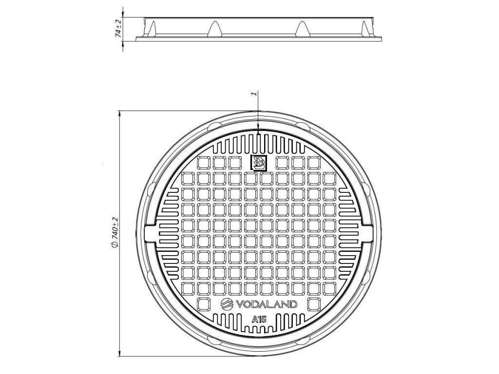 Poklop pochôdzny VODALAND A15 kompozitný s rámom 740 mm čierny
