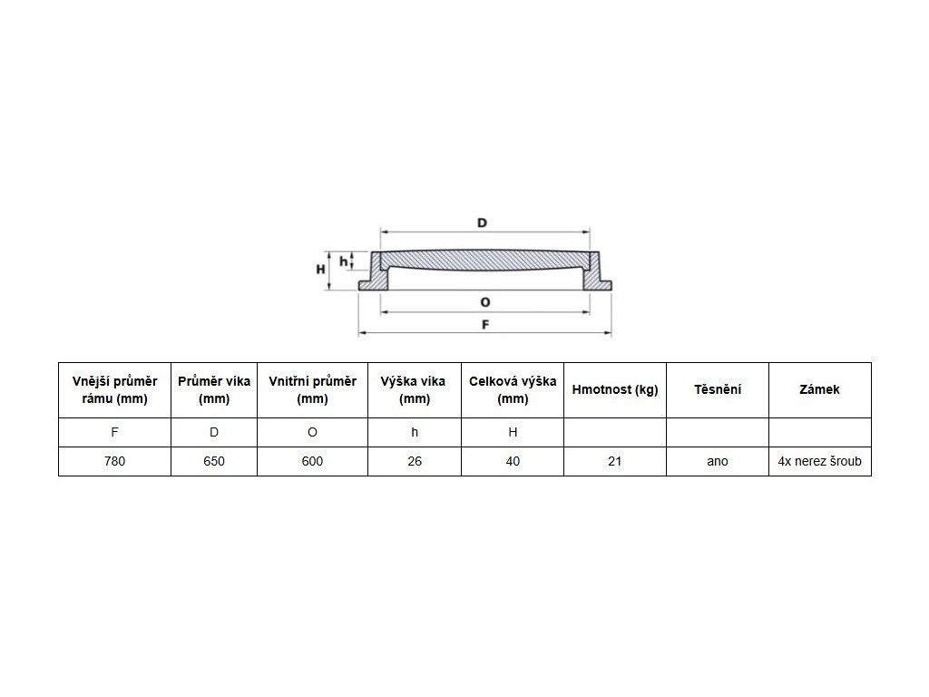 - vnútorný priemer poklopu: 600 mm
