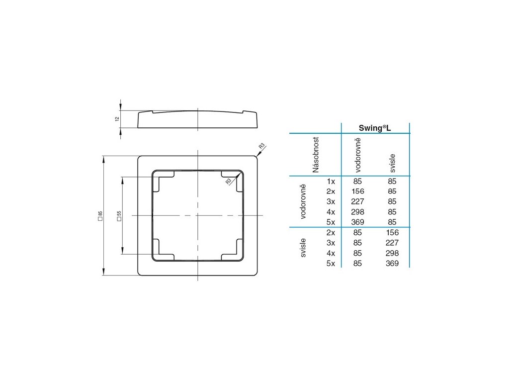 Základný rámček SWING L je vyrobený z veľmi kvalitného termoplastu a slúži na vodorovnú aj zvislú montáž elektroinštalačných prístrojov. Obsahuje celkom 2 inštalačné jednotky a je možné ho využiť pre domové spínače a zásuvky.