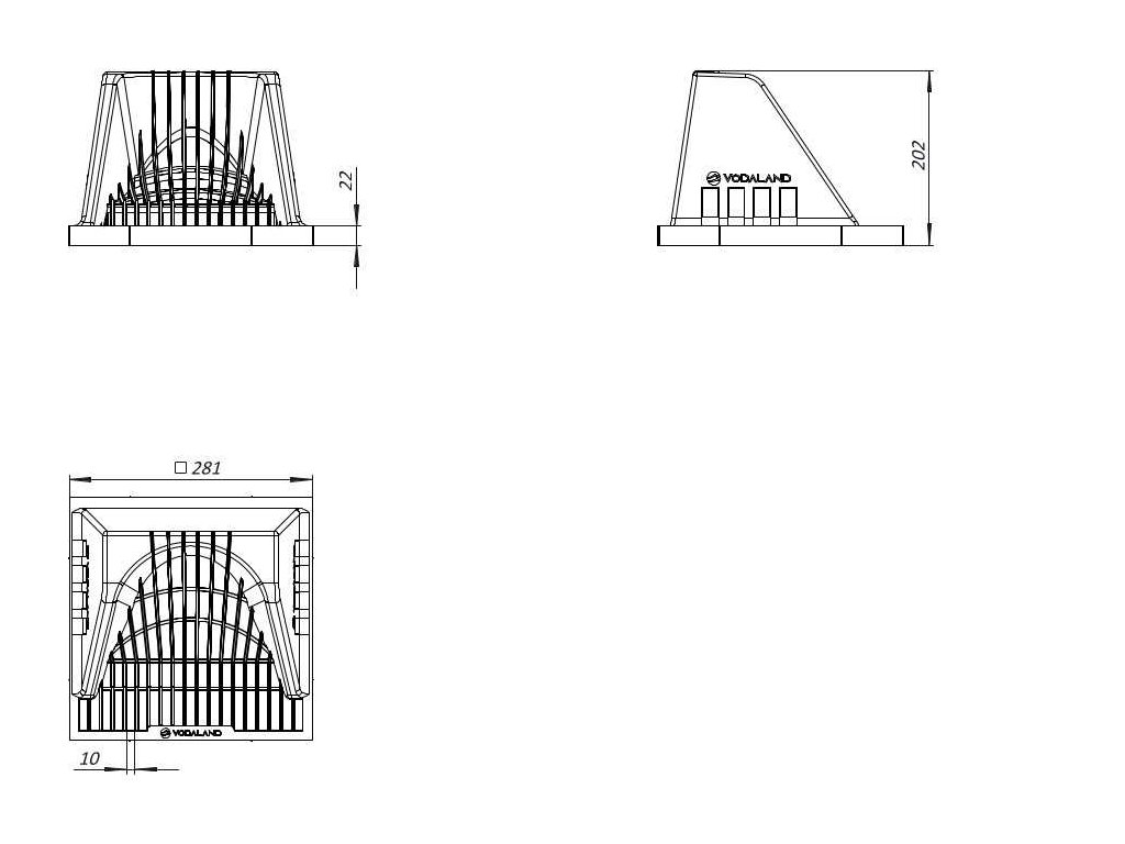 Revízna šachta VODALAND BASE, inak zvaná dvorná vpust, je vyrobená z veľmi odolného polypropylénu a slúži pre spoľahlivý a účinný zber aj odvod povrchovej vody z plôch rodinných domov, chalúp, chát, budov, dvorčekov, terás a záhrad do kanalizácie alebo podzemnej nádrže. Poskytuje vysokú mechanickú, chemickú a tepelnú odolnosť, odolnosť proti poveternostným vplyvom a UV žiareniu, jednoduchú údržbu a inštaláciu a tiež dlhú životnosť. Na všetkých štyroch vonkajších stenách šachty sa nachádzajú vtoky a odtoky o vonkajších priemeroch 50 mm, 110 mm a 160 mm pre napojenie kanalizačných rúr, odpadových rúr alebo drenážnych rúr. Horná časť šachty je vybavená odnímateľným plastovým 3D roštom a obsahuje patričné hrany pre nasadenie priamo určeného nástavca, ktorý umožňuje predĺženie šachty alebo alternatívne zabudovanie akéhokoľvek roštu alebo poklopu o rozmere 300 x 300 mm k šachte. Tento typ šachty je možné využiť ako čistiaci, zberný, spojovací, rozvodový alebo revízny prvok. Umožňuje efektívny odtok vody a pomocou špeciálneho 3D roštu, ktorý tiež plní funkciu lapača strešných splavenín a nečistôt, chráni stenu budovy pred striekajúcou vodou z odkvapu a pomáha efektívne zabrániť tvorbe vlhkosti, kaluží, stojatých vôd, machu a nepríjemných pachov.
