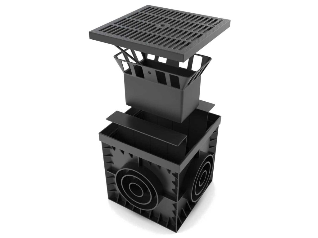 Revízna šachta VODALAND BASE 300 x 300 mm plastová s plastovým roštom A15 50-160 mm čierna