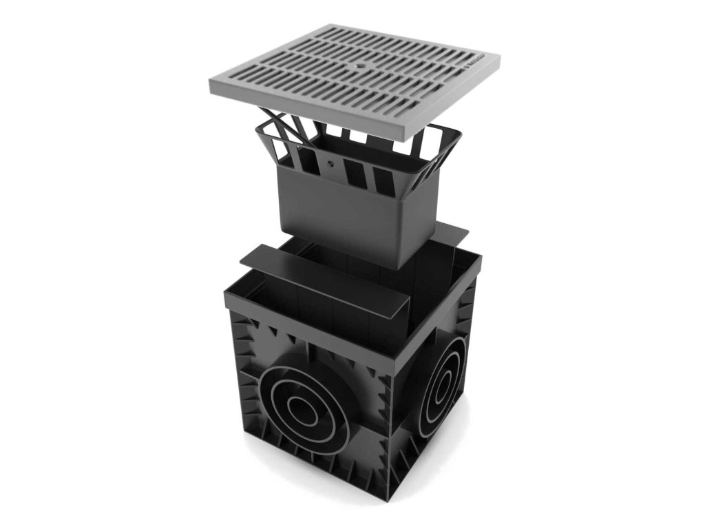 Revízna šachta VODALAND BASE 300 x 300 mm plastová s plastovým roštom A15 50-160 mm šedá