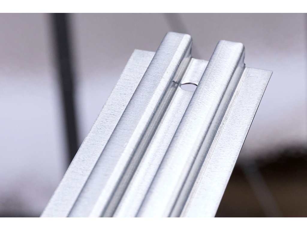 - konštrukcia je vyrobená z vysoko kvalitného žiarovo zinkovaného plechu hrúbky 1–2 mm (podľa zaťaženia jednotlivých častí skleníka)