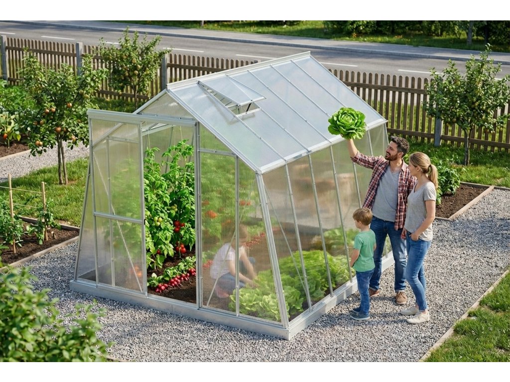 Vďaka jedinečnej, priemyselne chránenej konštrukcii je skleník ľahko zmontovateľný svojpomocne. Šikmé bočné steny skleníka zväčšujú plochu na pestovanie a zlepšujú prístup svetla k rastlinám. Rozmery tohto skleníka ho robia vhodným pre malé záhradky a pre začínajúcich záhradkárov.