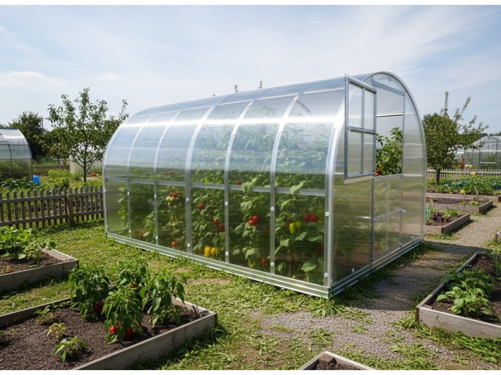 Prémiový britský dvojstenný polykarbonát 4 mm so silným UV filtrom (preto na slnku nežltne a nekrehne). Z dôvodu zaistenia maximálnej kvality skleníka dodávané ku konštrukcii presklenia z kvalitného polykarbonátu MARLON (výrobca Brett Martin Veľká Británia), ktorý v SR prešiel náročnými testami v štátom akreditovaných skúšobniach ako stavebný materiál. Navyše disponuje skúšobným protokolom zo Štátneho zdravotného ústavu Praha, ktorý potvrdzuje, že sa z polykarbonátu neuvoľňujú žiadne škodlivé látky. Môžete tak nerušene pestovať zeleninu bez obáv o svoje zdravie. Zmluvná predĺžená záruka 10 rokov na nerozbitnosť polykarbonátu krupobitím je u skleníkov od LANIT PLASTU samozrejmosťou.