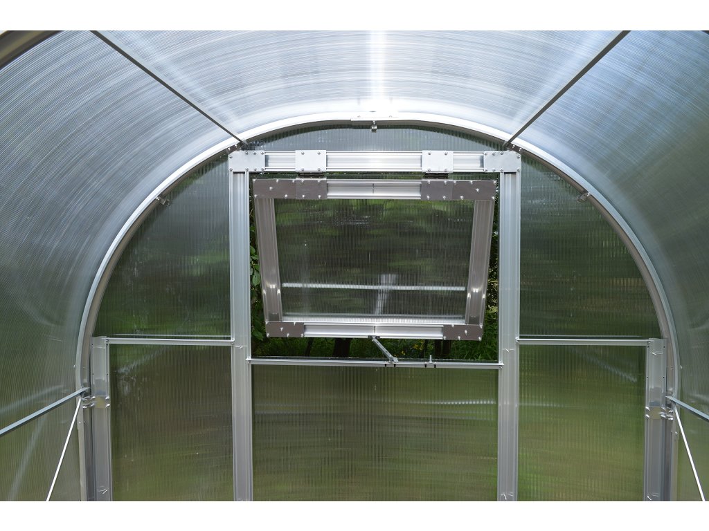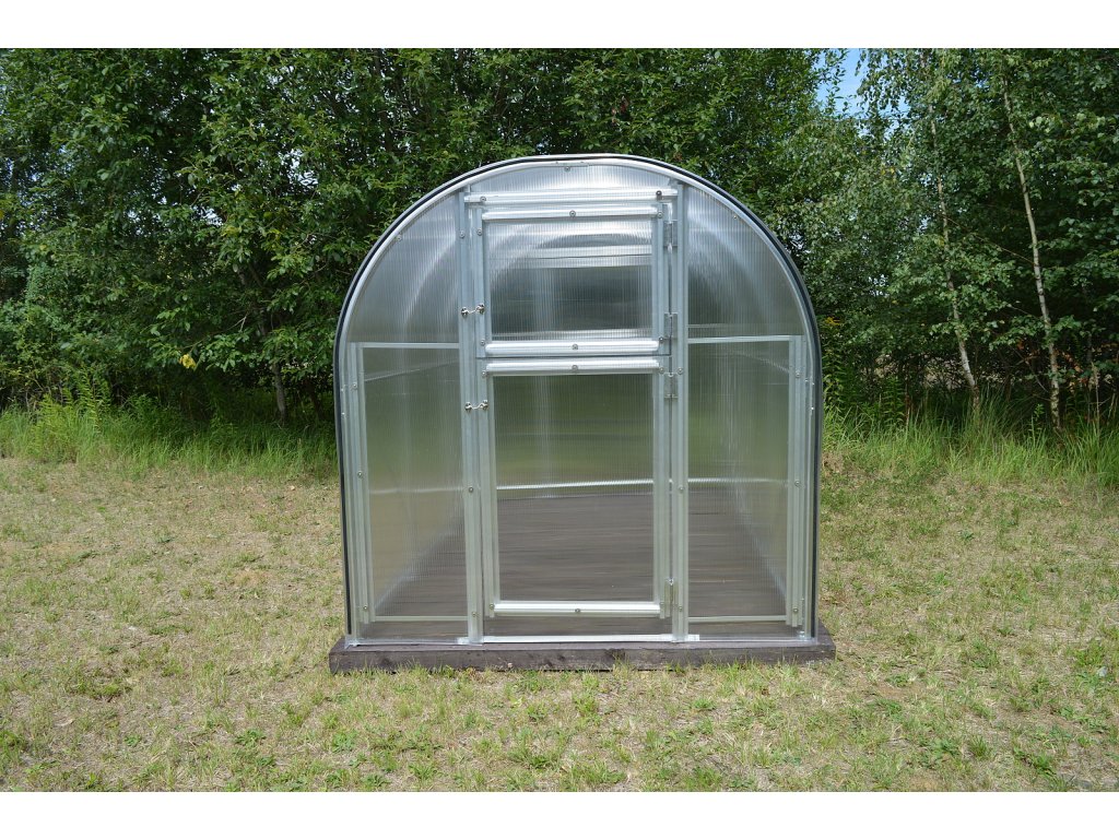 Konštrukcia skleníka je zoskrutkovaná z masívnych 1 mm hrubých a 65 mm širokých eloxovaných hliníkových profilov. Všetky skrutkované spoje sú z hliníkových skrutiek a matiek, pánty a petlice sú vyrobené z nerezovej ocele, takže sa jedná o korózii absolútne odolný skleník. Jednotlivé rebrá nosných oblúkov sú od seba vzdialené osovo 100 cm. Predné čelo má dvojdielne dvere na pántoch, zadné čelo obsahuje vetracie okienko. Skleník nie je priechodný. Ako príplatkové príslušenstvo je možné dokúpiť rôzne druhy regálov, teplomery, vlhkomery a pod.