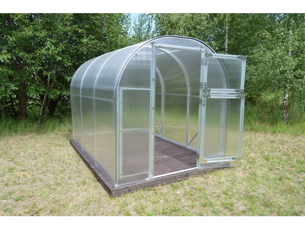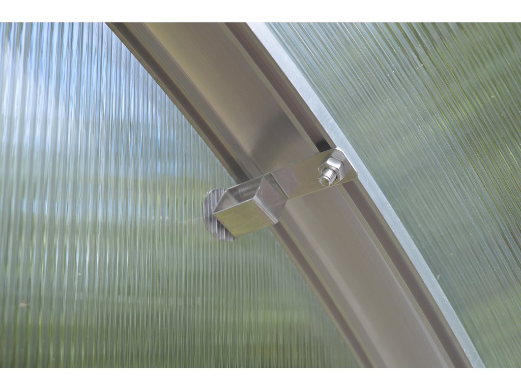 Konštrukcia skleníka je zoskrutkovaná zo silných hliníkových profilov (masívny 1 mm silný a 65 mm široký eloxovaný hliníkový profil) a doplnená prémiovým komôrkovým polykarbonátom s UV filtrom od britskej firmy BRETT MARTIN s predĺženou zmluvnou zárukou 10 rokov na nerozbitnosť polykar. Táto kombinácia robí zo skleníkov radu VITAVIA BOHEMY jeden z najkvalitnejších a súčasne na montáž najjednoduchších skleníkov na slovenskom trhu. Jednotlivé profily sa vzájomne zoskrutkujú a po ich zostavení vznikne veľmi stabilná oblúková konštrukcia bez nutnosti stavby skleníkovej podmurovky. Skleník je vybavený kotvami priamo do zeme. Montáž skleníka zvládnete svojpomocne v dvoch až troch osobách. V pôde sa záhradný skleník upevňuje zakopávaním pätiek konštrukcie do zeme, prípadne ich zaliatím do betónu (odporúča sa).