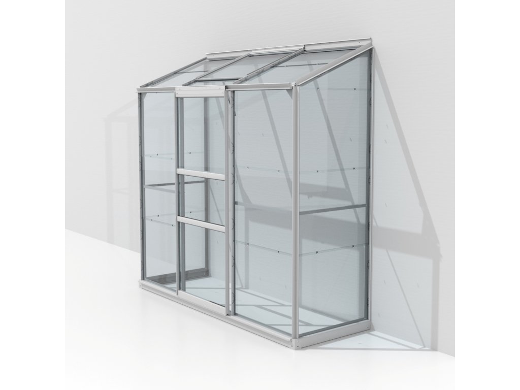 Skleník je vybavený jednokrídlovými dverami (veľkosť 0,61 x 1,51 m), AL profily, presklenie, 1x strešným ventilačným okienkom s manuálnym otváraním, všetkým spojovacím materiálom. Skleník je možné postaviť buď na murovanú podmurovku (potom nie je nutné dokupovať základňu z pozinkovaného plechu) alebo na základňu z pozinkovaného plechu (nutné dokúpiť). Pri stavbe bez murovanej podmurovky dokúpenie základne určite odporúčame. Ku skleníku je možné dokúpiť rad nadštandardného príslušenstva - poličky, regály, teplomery, vlhkomery, zavlažovacie zariadenie, elektrické odporové vykurovanie pôdy. Balené v papierovom kartóne. Presklenie je zabalené v nevratnej drevenej debne.