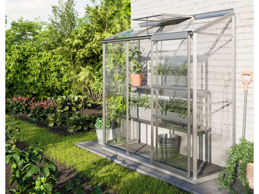 Hliníkový záhradný skleník VITAVIA IDA 1300 číre sklo 3 mm strieborný