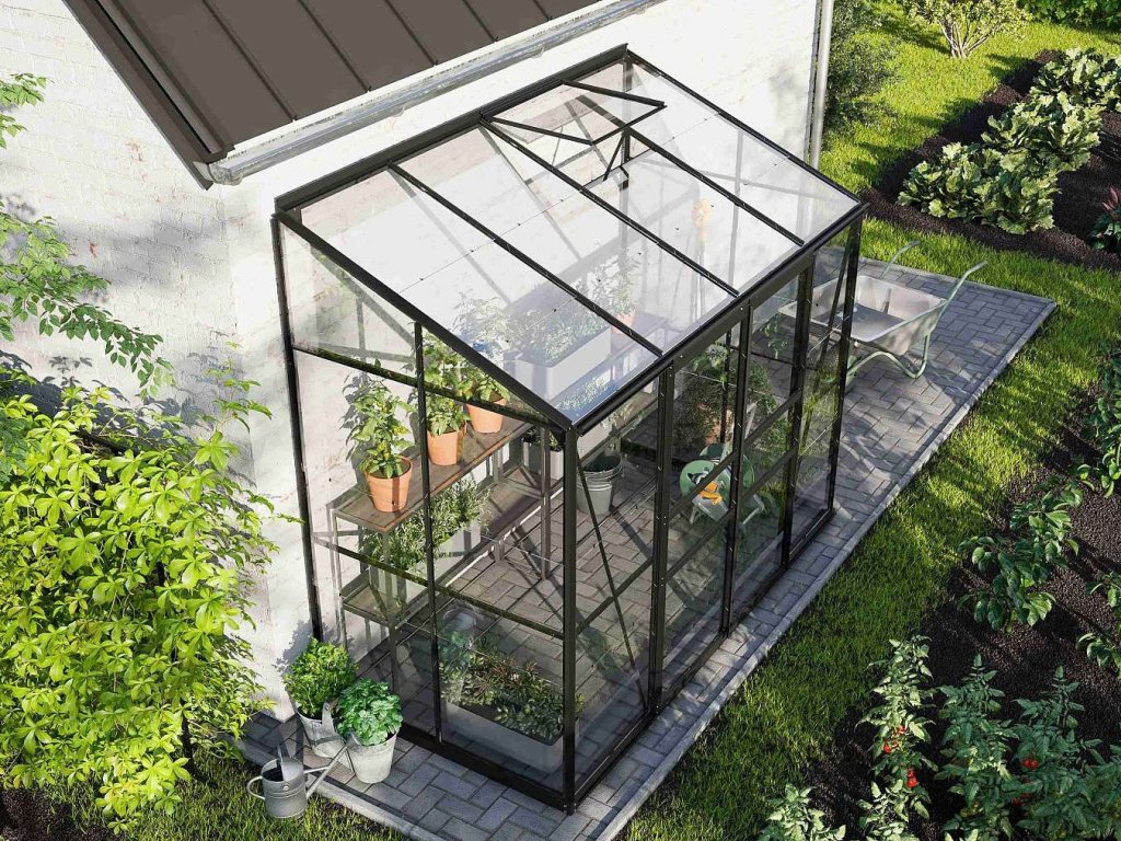 - skleník je určený na montáž k stene - zadná stena nie je súčasťou konštrukcie