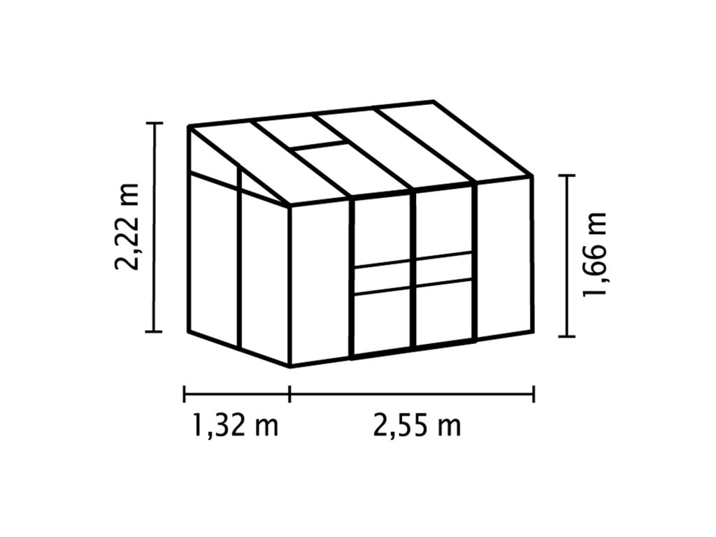 - vonkajšie rozmery š 2,55 x d 1,32 x v 2,21 m