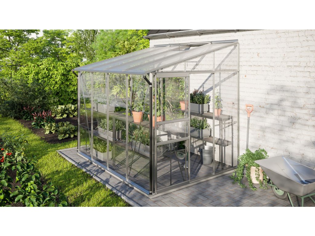 - skleník je určený na montáž k stene - zadná stena nie je súčasťou konštrukcie