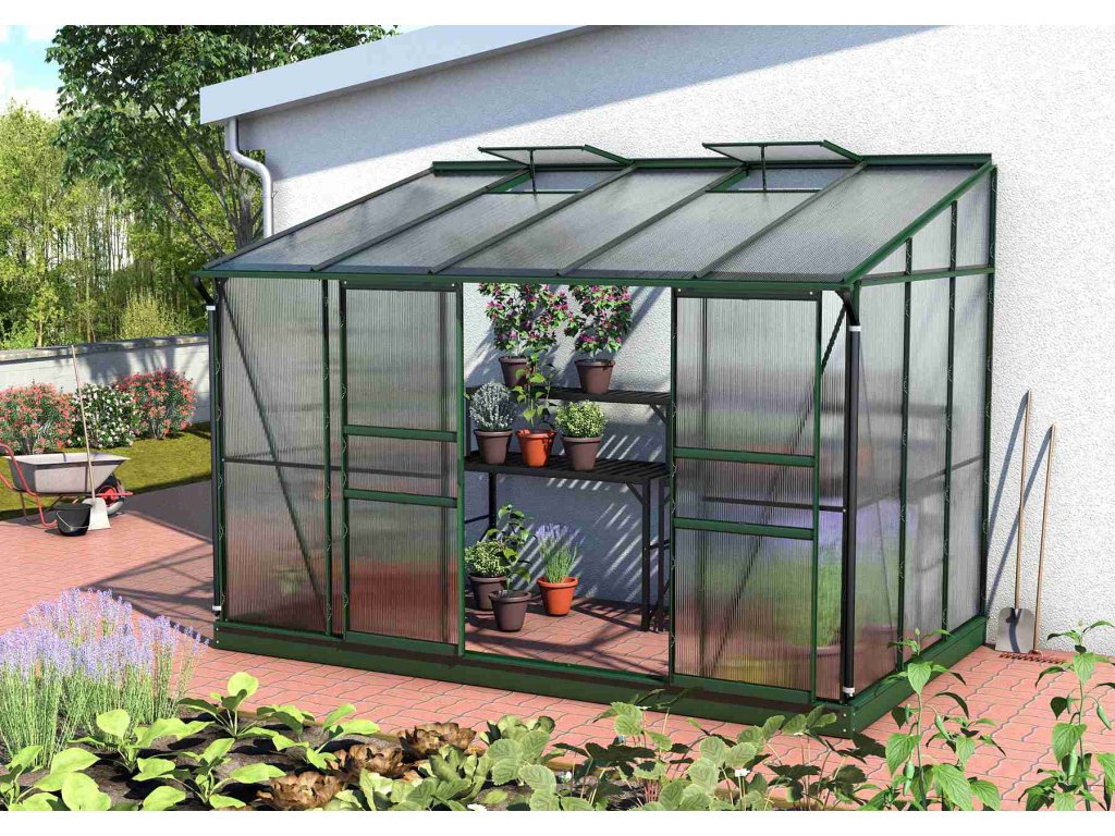 - skleník je určený na montáž k stene - zadná stena nie je súčasťou konštrukcie