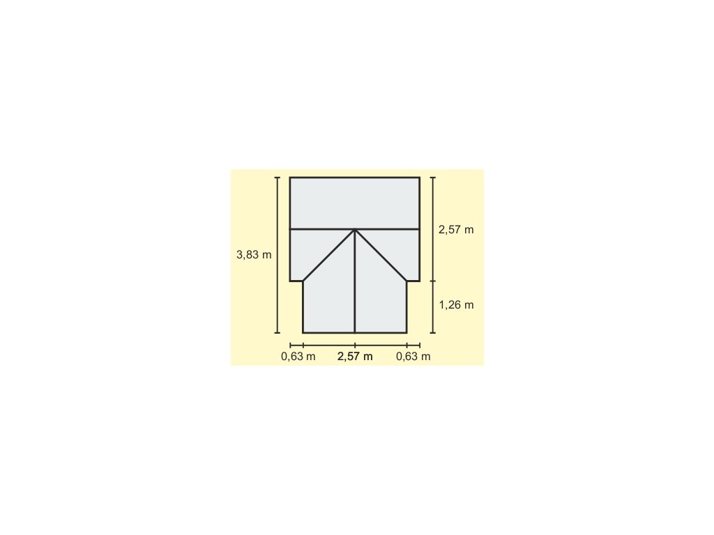 - vonkajšie rozmery š 3,83 x d 3,83 x v 2,54 m