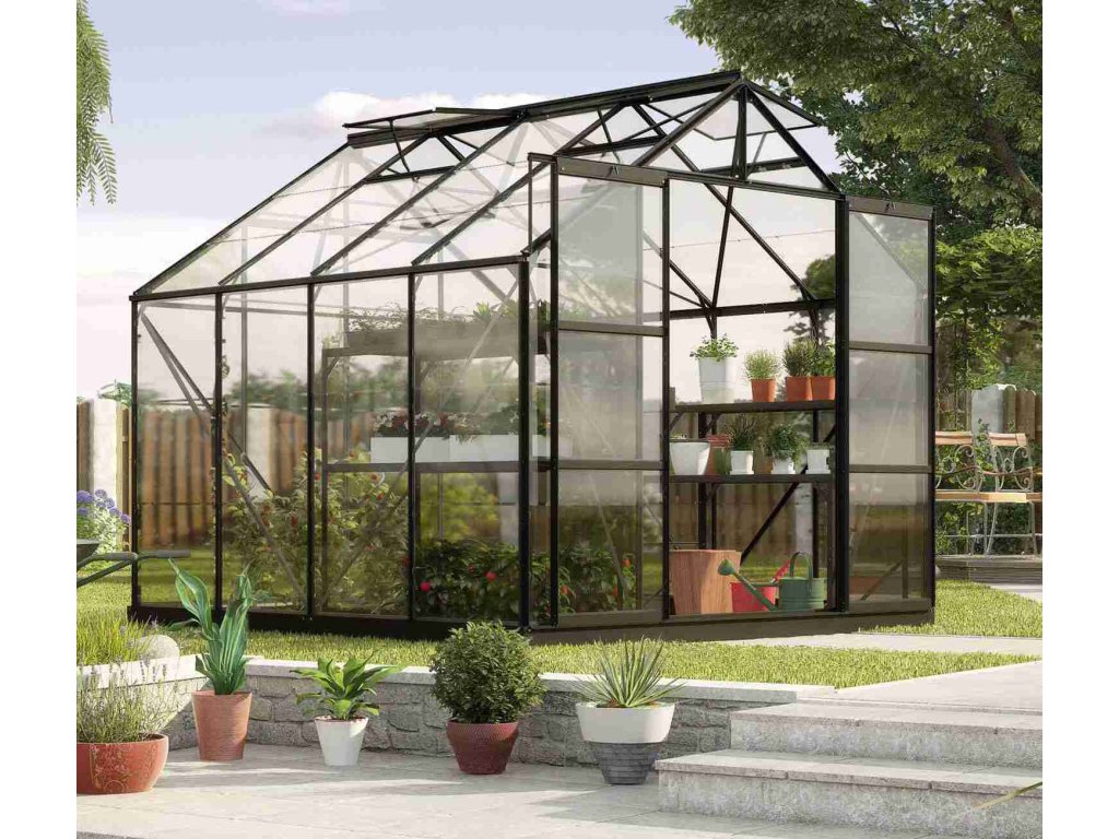 Hliníkový záhradný skleník VITAVIA URANUS 6700 číre sklo 3 mm čierny