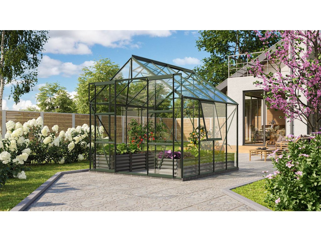 Hliníkový záhradný skleník VITAVIA URANUS 6700 číre sklo 3 mm zelený