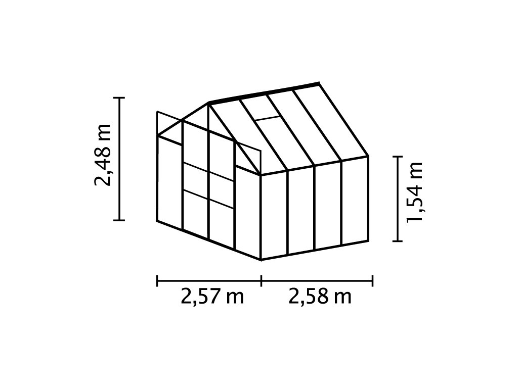 - vonkajšie rozmery š 2,57 x d 2,58 x v 2,48 m