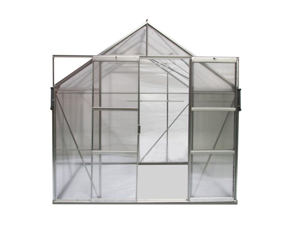 Obsahom balenia sú dvojkrídlové posuvné dvere (š x v otvore = 1,22 x 1,91 m), AL profily, presklenie, 4x strešné ventilačné okienko s manuálnym otváraním, všetok spojovací materiál. Skleník je možné postaviť napr. na murovanú podmurovku alebo na základňu z pozinkovaného plechu. Pri stavbe bez podmurovky dokúpenie základne odporúčame. Ku skleníku je možné dokúpiť rad nadštandardného príslušenstva - poličky, regály, ďalšie vetracie strešné aj bočné okienka, automatické otvárače k týmto okienkom, odkvapové sady, teplomery, vlhkomery, zavlažovacie zariadenia, elektrické odporové vykurovanie pôdy.