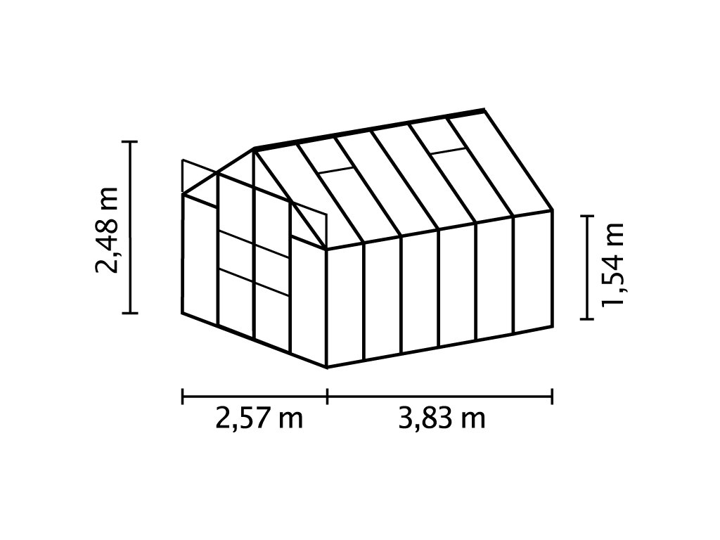 - vonkajšie rozmery š 2,57 x d 3,83 x v 2,48 m
