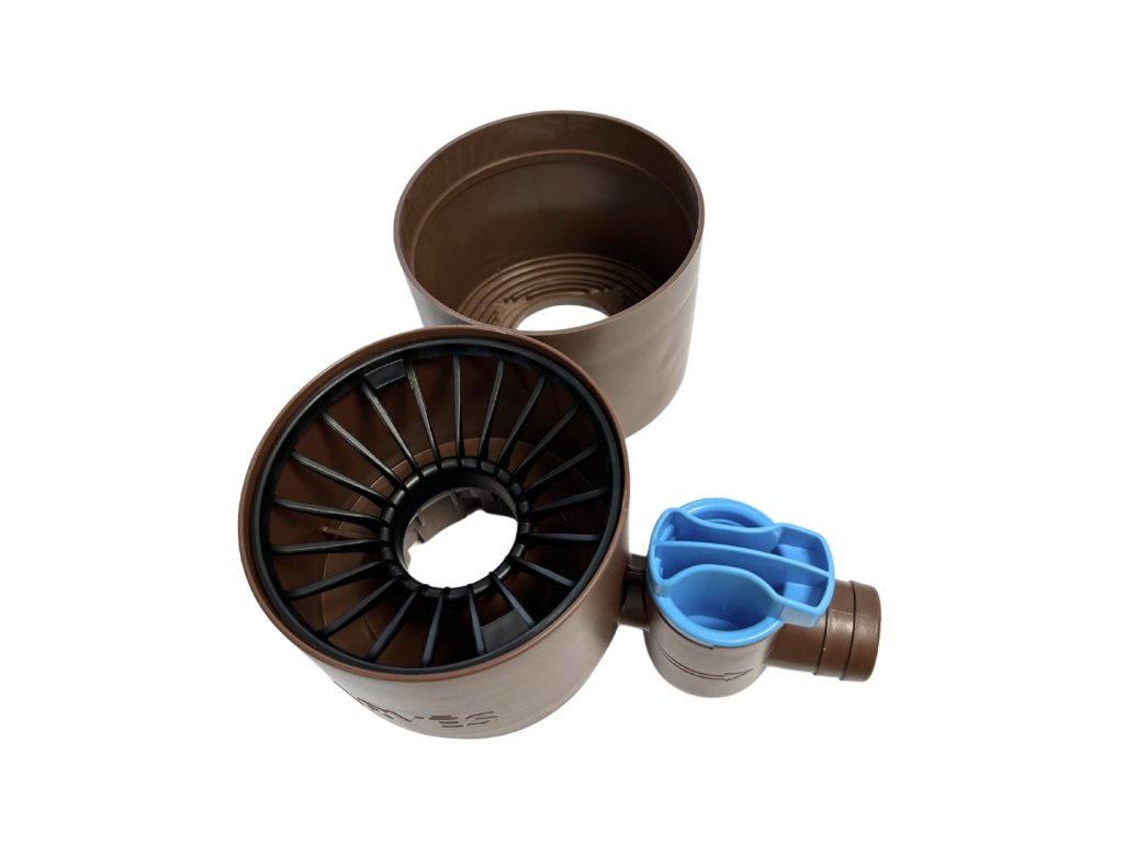 Kohútik je možné podľa potreby otvoriť alebo zavrieť – takže môžete ľahko ovládať, či voda tečie do suda alebo nie. Ideálne pre záhrady, chaty, ekologické domácnosti a každého, kto chce šetriť pitnou vodou a využívať dažďovku. Celá sada je vyrobená z odolného plastu v neutrálnej tmavo hnedej farbe, ktorá nenaruší vzhľad vašej fasády ani záhrady.