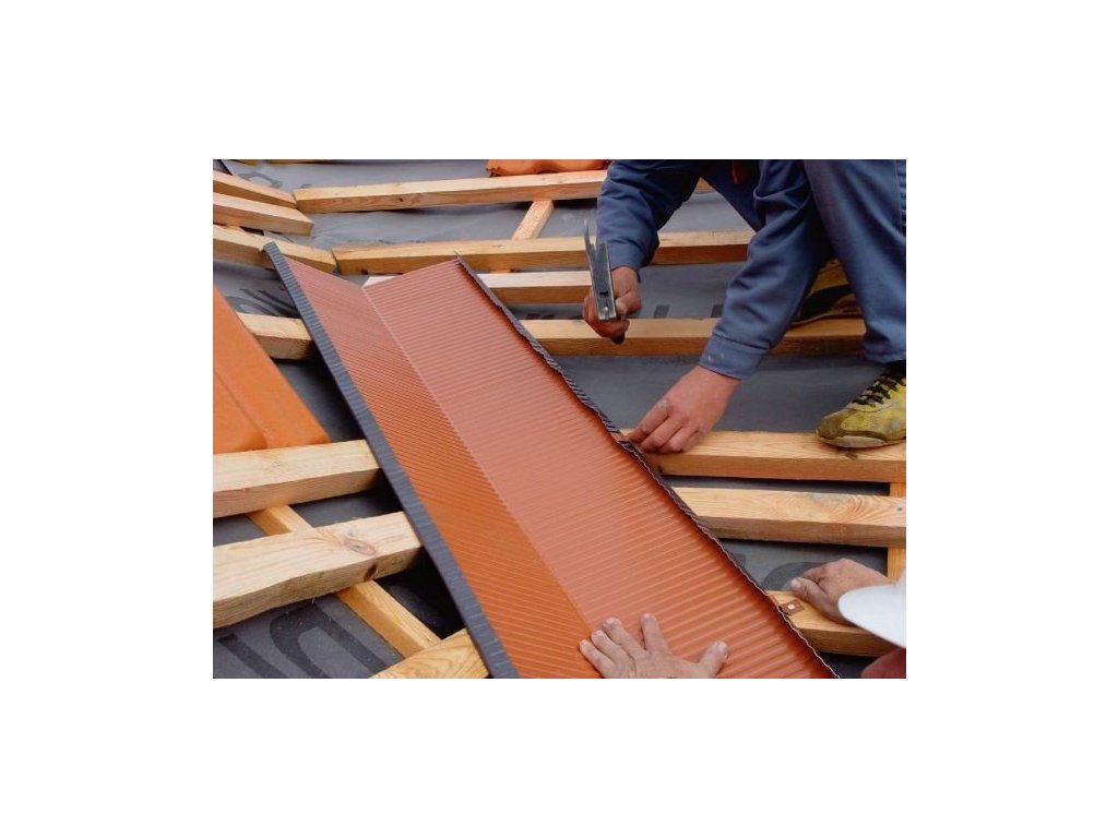 Vysoko kvalitné, priečne lisované úžľabie strechy UNI ROLL s výrazne označenými miestami tvarovania (ohýbania) slúžia na odvedenie zrážkovej vody z pretínajúcich sa plôch striech. Špeciálne jamky umožňujú pokrývači ručne tvarovať úžľabia priamo na streche. Tento typ prevedenia uľahčuje celkovú montáž, pričom neovplyvňuje tvrdosť a tuhosť úžľabia.